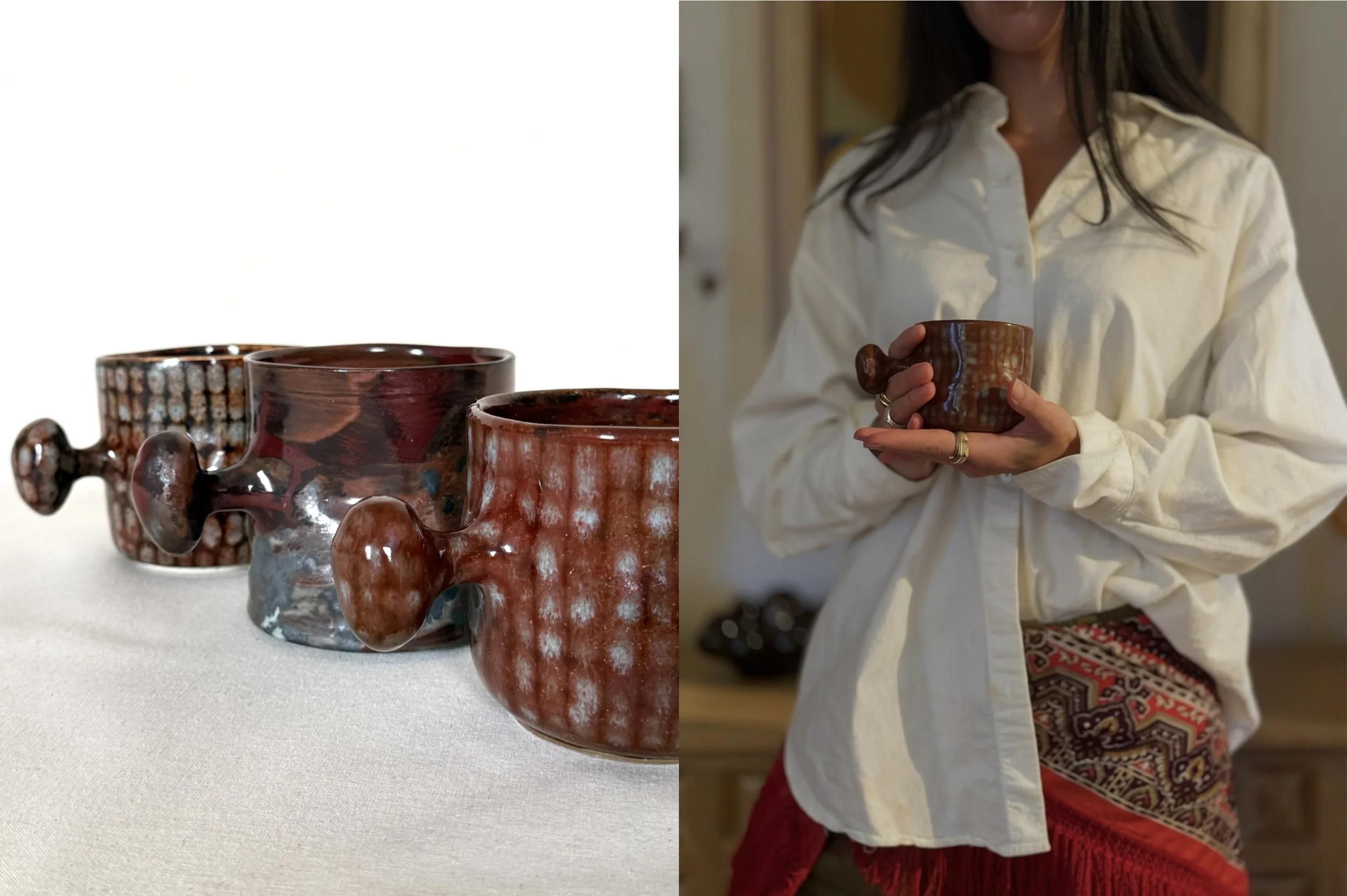 Each one is a singular object and a tactile reminder that beauty lives in variation, and that the objects we reach for every day can still carry the warmth of human touch.
